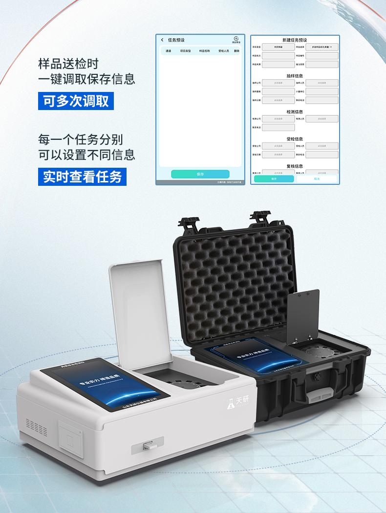 | 儀器采用手提式一體化系統(tǒng)檢測技術(shù),將分光光度模塊、膠體金檢測模塊、新型農(nóng)殘檢測模塊、數(shù)字化管理模塊、無線通訊模塊高度集成于一體,支持檢測200種食品安全檢測項(xiàng)目,同時(shí)預(yù)留升級檢測方法。 | 儀器檢測模塊標(biāo)準(zhǔn)化、智能化,檢測項(xiàng)目可隨意自由組合。檢測箱體內(nèi)置多個標(biāo)準(zhǔn)檢測單元,檢測模塊可以調(diào)整配置。 | 顯示屏幕:儀器采用10.1英寸豎向液晶觸摸屏顯,搭配運(yùn)行安卓智能操作系統(tǒng),主控芯片采用ARM Cortex-A7,RK3288/4核處理器,主頻1.88Ghz,操作方便,性能更強(qiáng)。 | 檢測通道:≥12通道;采用精密旋轉(zhuǎn)比色池設(shè)計(jì),使用同芯片同光源校準(zhǔn)精度,解決不同光源之間的誤差值,更加準(zhǔn)確**。(1-12通道間誤差0.1%,**號:ZL202022821055.2) | 儀器光源:高精度進(jìn)口四波長冷光源,每個通道均配置 410、520、590、630nm 波長光源,標(biāo)配**的光路切換裝置,**光路切換功能可實(shí)現(xiàn)64波長,并且所有檢測項(xiàng)目可實(shí)現(xiàn)所有通道同時(shí)檢測。 | 設(shè)備可一鍵校準(zhǔn),自動保存校準(zhǔn)數(shù)據(jù),自動對比校驗(yàn),得到精準(zhǔn)光源,采用Android SP存儲數(shù)據(jù),光源數(shù)據(jù)永不丟失,方便每一次使用。 | 通訊接口:配備無線通信模塊、4G(APN)通訊模塊、藍(lán)牙傳輸,同時(shí)具有雙USB接口以及RJ45網(wǎng)線接口,可以多方式實(shí)現(xiàn)數(shù)據(jù)保存及數(shù)據(jù)傳輸 | 存儲方式:支持U盤存儲,標(biāo)準(zhǔn)USB接口,免驅(qū)動安裝。檢測結(jié)果存儲容量20萬條以上,可生成Excel表格進(jìn)行拷貝,并具有登錄保護(hù)功能。 | 智能化操作系統(tǒng): | 1)操作系統(tǒng):儀器可在同一檢測界面自動對應(yīng)相關(guān)檢測通道,一次性選擇1-12個樣品名稱,無需退出界面,節(jié)省操作時(shí)間。并可以對每個通道屬性和樣品信息單獨(dú)進(jìn)行編輯,例如送檢單位、人員,檢測人員等,打印時(shí)勾選打印顯示。 | 2)數(shù)據(jù)集成系統(tǒng):設(shè)備首頁自動匯總分析檢測數(shù)據(jù),包含:周檢測數(shù)據(jù)、月檢測數(shù)據(jù),全部檢測總數(shù)量,均包含檢測總數(shù),合格數(shù),不合格數(shù),以及相關(guān)柱形分析圖,各項(xiàng)檢測數(shù)據(jù)一目了然,無需電腦查詢,更加快捷直觀。 | 3)數(shù)據(jù)庫系統(tǒng):十幾項(xiàng)數(shù)據(jù)庫分類管理儀器:包含項(xiàng)目類型、項(xiàng)目數(shù)據(jù)、檢測數(shù)據(jù)、歷史記錄、國標(biāo)信息、曲線信息、采樣信息、檢測信息、受檢信息、復(fù)核信息、圖表信息、光源校準(zhǔn)信息、打印樣式信息、樣品庫信息等等,數(shù)據(jù)庫之間互相協(xié)調(diào)聯(lián)動保證數(shù)據(jù)的真實(shí)完整性。同時(shí)產(chǎn)品數(shù)據(jù)庫以及歷史檢測記錄支持一鍵檢索功能。 | 4)限量規(guī)判系統(tǒng):具有限量查詢、添加物質(zhì)合規(guī)判定系統(tǒng)。檢測出結(jié)果后,系統(tǒng)自動調(diào)用系統(tǒng)數(shù)據(jù)庫中相關(guān)國標(biāo)進(jìn)行比對判定,客觀顯示判定結(jié)果是否合格。 | 5)項(xiàng)目預(yù)設(shè)系統(tǒng):儀器具有任務(wù)預(yù)設(shè)模塊,一鍵提前預(yù)設(shè),給出方便快捷的新檢測方案,每一個任務(wù)分別可以設(shè)置不同的樣品、批次、編號、來源、備注、抽樣信息、檢測信息、受檢信息、復(fù)核信息等更多信息。樣品送檢時(shí)一鍵調(diào)取保存信息,并可多次調(diào)取,大大提高檢測效率。 | 6)數(shù)據(jù)監(jiān)管系統(tǒng):同步對接監(jiān)管平臺,數(shù)據(jù)可局域網(wǎng)和互聯(lián)網(wǎng)數(shù)據(jù)上傳,檢測結(jié)果可選擇直接傳至食品安全監(jiān)管平臺。進(jìn)行區(qū)域食品安全監(jiān)管及大數(shù)據(jù)分析處理與數(shù)據(jù)統(tǒng)計(jì),檢測區(qū)域食品安全長短期動態(tài),達(dá)到食品安全問題預(yù)估、預(yù)警。 | 7)打印系統(tǒng):內(nèi)置全新打印機(jī),新創(chuàng)自定義打印方式,可按需靈活勾選控制:產(chǎn)品合格證(國家農(nóng)業(yè)部標(biāo)準(zhǔn)要求),二維碼,抽樣信息、檢測信息,受檢信息、復(fù)核信息、抽樣日期、檢測日期等信息的打印。 | 供電模式:儀器交直流兩用,直流12V供電,可連接車載電源,可配6ah大容量充電鋰電池,電量可實(shí)時(shí)顯示,方便戶外流動測試。 | 膠體金檢測模塊:采用雙通道CMOS成像處理技術(shù)及膠體金免疫層析技術(shù),可同時(shí)讀取雙膠體金卡數(shù)據(jù),自動采集、處理分析,將檢測結(jié)果顯示,并可根據(jù)參考限值自動判斷檢測結(jié)果,可檢測常見的獸藥殘留、生物毒素、抗生素、違禁添加物等。 | 1)探測技術(shù):CMOS成像探測; | 2)檢測通道:1個通道; | 3)檢測方式:消線法和比色法; | 4)顯示模式:陰性或陽性; | 5)曲線形式:軌道式掃描方式,顯示金標(biāo)卡圖像,實(shí)時(shí)生成、識別CT曲線圖,無需手動調(diào)整,完成檢測后自動退出檢測卡。兼容市場上其他金標(biāo)卡,使用耗材不受限制。 | 儀器加入遠(yuǎn)程升級功能,可定向分客戶分儀器更新,開機(jī)后自動更新,客戶無需任何操作,即可升級全新項(xiàng)目。做到了無需退換機(jī)器即可實(shí)現(xiàn)實(shí)時(shí)遠(yuǎn)程升級檢測儀器。 |