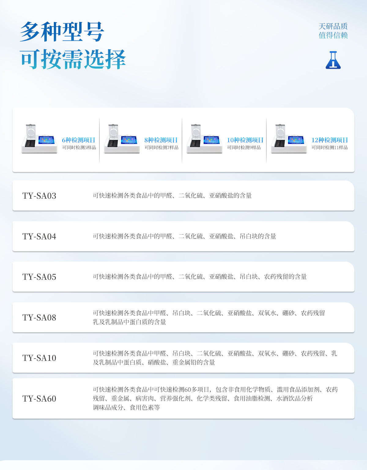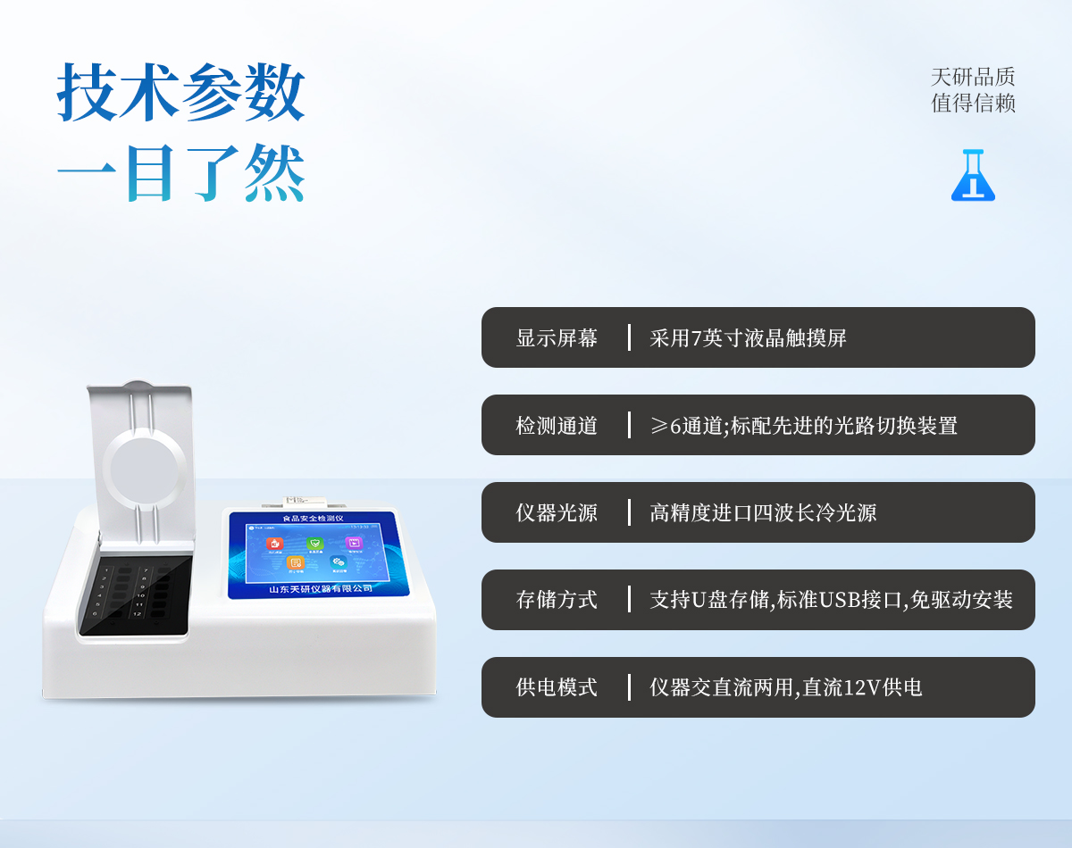 產(chǎn)品描述:產(chǎn)品介紹: 多功能食品安全檢測(cè)儀可快速檢測(cè)200多項(xiàng)目,包含非食用化學(xué)物質(zhì)、濫用食品添加劑、農(nóng)藥殘留、獸藥殘留、重金屬、病害肉、營(yíng)養(yǎng)強(qiáng)化劑、抗生素類殘留、激素類殘留、真菌毒素類殘留、化學(xué)類殘留等現(xiàn)場(chǎng)的定性定量檢測(cè)。該多功能食品安全檢測(cè)儀為集成化食品安全快速檢測(cè)分析設(shè)備,廣泛應(yīng)用于市場(chǎng)【詳情】