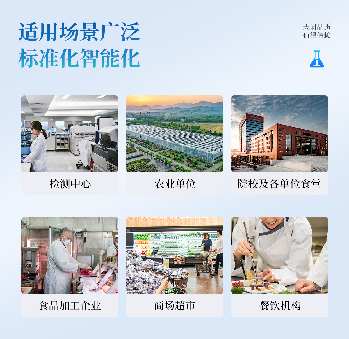 多功能食品安全檢測儀可快速檢測200多項目,包含非食用化學物質、濫用食品添加劑、農(nóng)藥殘留、獸藥殘留、重金屬、病害肉、營養(yǎng)強化劑、抗生素類殘留、激素類殘留、真菌毒素類殘留、化學類殘留等現(xiàn)場的定性定量檢測。該多功能食品安全檢測儀為集成化食品安全快速檢測分析設備,廣泛應用于市場監(jiān)管局、檢測中心、衛(wèi)生監(jiān)督部門、農(nóng)業(yè)部門、院校及各單位食堂、食品肉產(chǎn)品深加工企業(yè)、商超市場、司法部門、餐飲機構、養(yǎng)殖場、屠宰場、檢驗檢疫部門等單位使用。