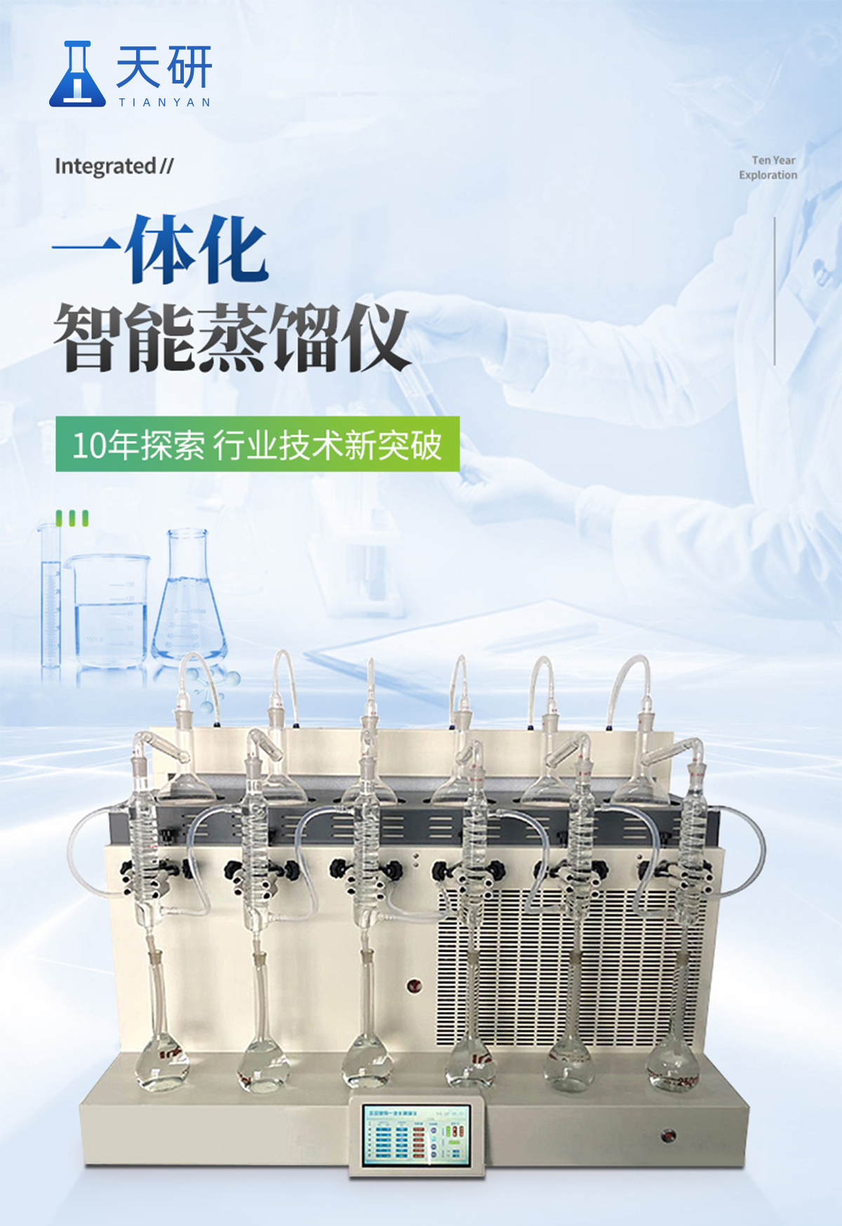 咨詢熱線:15854444001 在線咨詢技術(shù)熱線TY-ZL6智能一體化蒸餾儀是根據(jù)實(shí)驗(yàn)室蒸餾預(yù)處理操作規(guī)程,集恒溫加熱、蒸餾終點(diǎn)自動(dòng)控制、冷卻水循環(huán)于一體的新型智能蒸餾處理裝置。