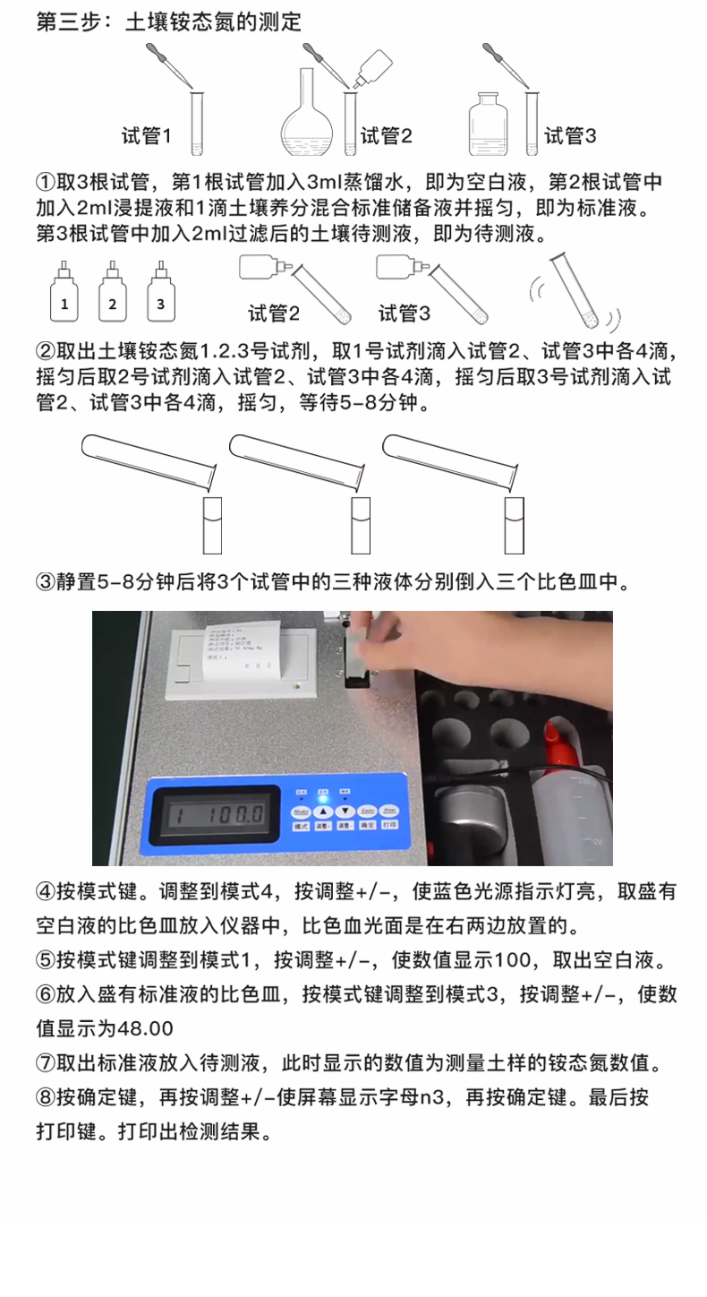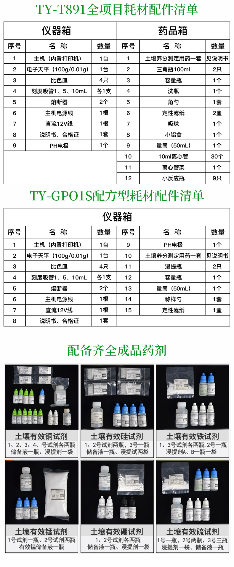 | 《機(jī)箱/藥劑一體式鋁合金機(jī)箱》設(shè)計(jì),便于攜帶、堅(jiān)固耐用,配套成品藥劑。 | 微電腦控制,數(shù)字化線路、程序化設(shè)計(jì),液晶顯示,交直流兩用,可野外流動(dòng)測(cè)試,大程度降低操作者的失誤和勞動(dòng)強(qiáng)度。 | 分辨率:0.001,觸摸式按鍵,內(nèi)置熱敏打印機(jī),可打印測(cè)試結(jié)果。 | 全項(xiàng)目土壤肥料養(yǎng)分速測(cè)儀可檢測(cè)土壤及化肥、有機(jī)肥(含葉面肥、水溶肥、噴施肥等)、植株中的速效氮、速效磷、有效鉀、全氮、全磷、全鉀、有機(jī)質(zhì)、酸堿度,鈣、鎂、硫、鐵、錳、硼、鋅、銅、氯、硅等各種中微量元素。 | 采用高亮LED光源,濾光式處理,保證光源波長(zhǎng)穩(wěn)定, 硅半導(dǎo)體作為信號(hào)接收系統(tǒng), 壽命長(zhǎng)達(dá)10萬(wàn)小時(shí)級(jí)別。光源穩(wěn)定,重現(xiàn)性好,準(zhǔn)確度高。 | 比色槽部分采用單通道設(shè)計(jì),無(wú)機(jī)械位移及磨損,光路測(cè)試定位**,保證測(cè)定結(jié)果精度。 | 配套專家施肥系統(tǒng)數(shù)據(jù),可對(duì)百余種全國(guó)農(nóng)業(yè)、果樹(shù)、 經(jīng)濟(jì)作物的目標(biāo)產(chǎn)量科學(xué)計(jì)算推薦施肥量。 | 采用高精度濾光片技術(shù)自主**分析方法(**號(hào):ZL 2018 2 1777724.7),保證檢測(cè)結(jié)果優(yōu)于國(guó)標(biāo)要求。 |