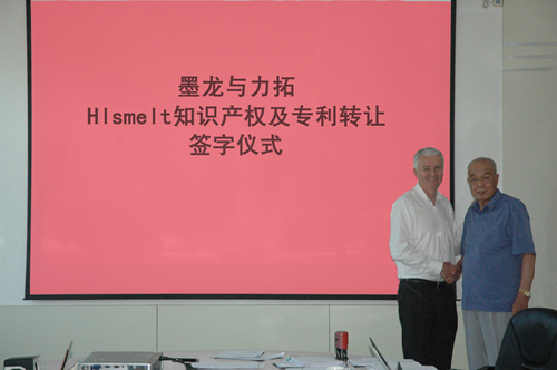 Hismelt工藝由力拓集團歷時三十多年開發(fā)完成,是冶金行業(yè)的革命性技術,該技術摒棄了傳統(tǒng)高爐工藝的煉焦與燒結(jié)工序,直接利用鐵礦粉與非焦煤進行鐵水的冶煉,從工藝流程上上解決了傳統(tǒng)鋼鐵行業(yè)高汙染的問題。並且,由於該工藝是壹種完全不同的新技術,其生產(chǎn)的鐵水具有低磷、低矽以及基本無五害元素的特點,其市場前景非常廣闊。相關協(xié)議簽訂完成後,墨龍技術人員將抓緊開展對Hismelt工藝相關技術的消化吸收,從而為羊口Hismelt工廠的進壹步穩(wěn)定達產(chǎn)提供幫助。後期,墨龍將依靠該技術,在全國乃至全球範圍內(nèi)進行Hismelt的技術推廣及技術支持工作,從而推動集團公司的轉(zhuǎn)型升級,促進企業(yè)的長遠發(fā)展。同時,Hismelt技術的完全引進,也展示了山東墨龍進壹步響應國家制造業(yè)轉(zhuǎn)型升級以及市委政府節(jié)能環(huán)保號召的能力與決心!