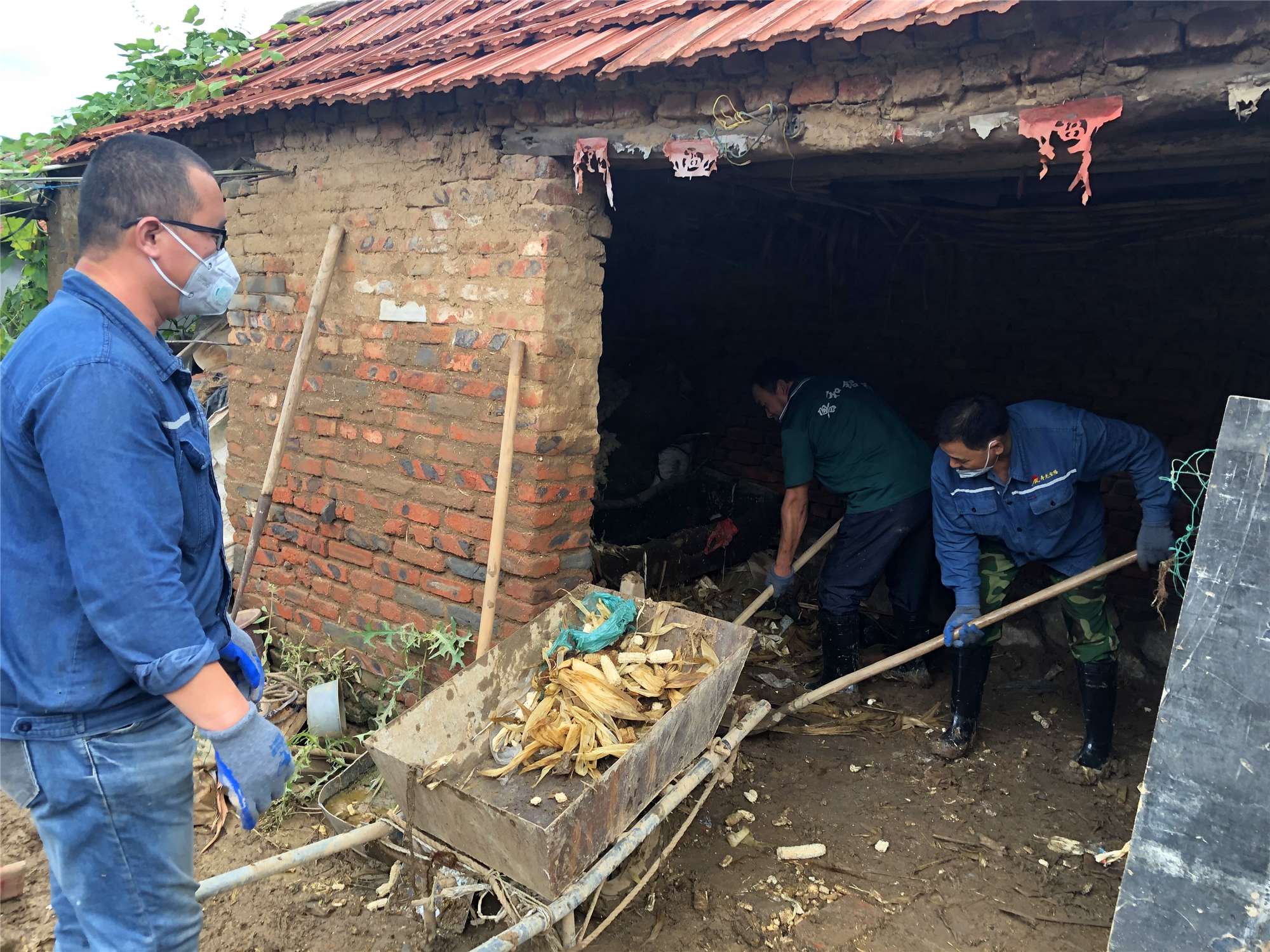 在到達營裏鎮(zhèn)南王家莊子村後,我們發(fā)現(xiàn)洪水過後,村內(nèi)大街小巷淤泥沈積,群眾出行特別困難,村內(nèi)環(huán)境衛(wèi)生堪憂,日常生產(chǎn)生活無法正常開展,受災情況嚴重。