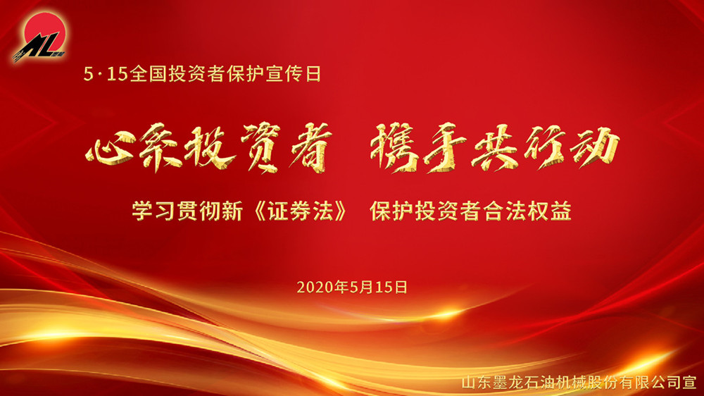 為做好“5.15全國投資者保護(hù)宣傳日”的投資者保護(hù)宣傳,山東墨龍(002490)積極響應(yīng)山東證監(jiān)局號召,以“心系投資者,攜手共行動—學(xué)習(xí)貫徹新《證券法》,保護(hù)投資者合法權(quán)益”為活動主題,開展投資者保護(hù)宣傳活動。公司將持續(xù)加強公司信息披露質(zhì)量、增加公司透明度,積極開展投資者互動溝通工作,營造良好的投資者關(guān)系氛圍,增進(jìn)投資者對上市公司的了解,全方位引導(dǎo)投資者樹立正確投資理念,更好地維護(hù)投資者的合法權(quán)益。
