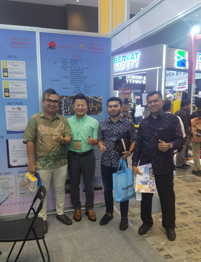 展會(huì)上,山東墨龍分管負(fù)責(zé)同誌積極參見了印尼國家石油公司的相關(guān)領(lǐng)導(dǎo),詳細(xì)介紹了公司油管、油套管、抽油泵、抽油桿等主要產(chǎn)品,且圍繞公司產(chǎn)業(yè)布局、市場(chǎng)拓展等方面進(jìn)行了系統(tǒng)闡述。期間與同行業(yè)石油裝備公司及製造商針對(duì)市場(chǎng)和鉆采技術(shù)等做了深入交流,詳細(xì)了解了油氣勘探、開采、生產(chǎn)、運(yùn)輸、儲(chǔ)存等方面的專業(yè)知識(shí)。同時(shí),通過自身宣傳讓更多的客戶進(jìn)一步了解了公司的生產(chǎn)狀況和產(chǎn)品內(nèi)容,更好地打造公司國際知名度。